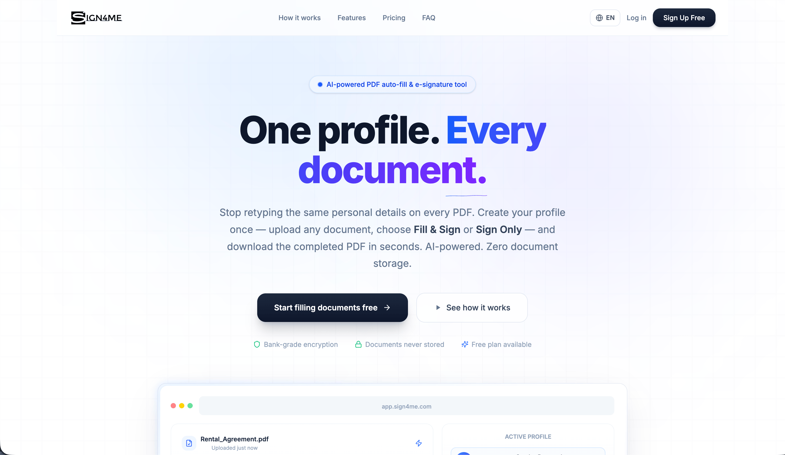 Sign4Me הוא כלי חכם ופשוט לניהול מסמכים, שנועד להסיר את כל החיכוך מעבודה עם ניירת. המערכת משתמשת בבינה מלאכותית כדי למלא טפסים במהירות ולבצע חתימות אלקטרוניות בצורה מאובטחת, כך שמשתמשים יכולים לטפל במסמכים בתוך שניות במקום בתוך דקות.